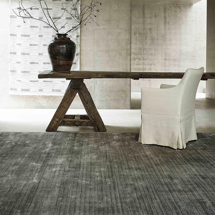 Un covor confortabil, exclusivist avand 12 mm groasime, tesut manual in India din fire 100% Tencel. Se poate comanda si sub forma de mocheta vezi Mocheta Arani.